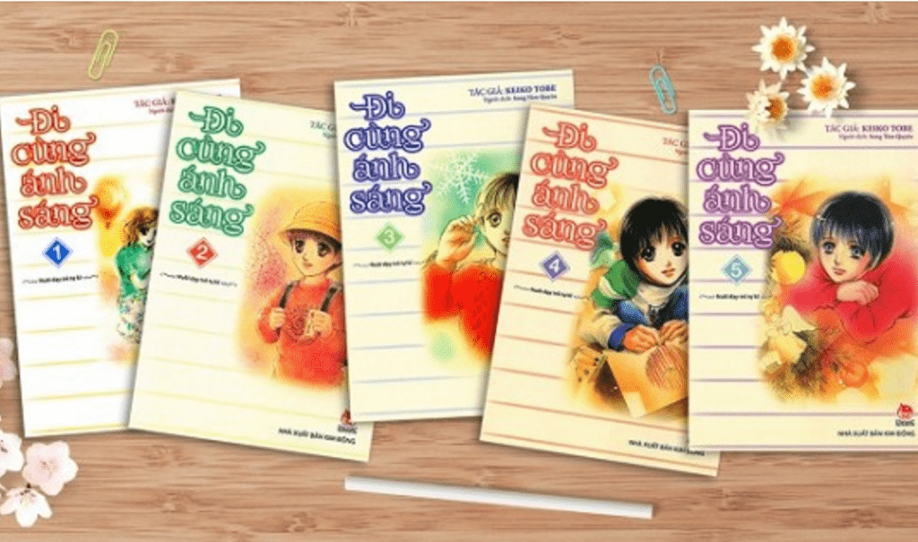 Đi cùng ánh sáng: Bộ truyện tranh viết về hành trình của một người mẹ giúp con vượt qua chứng tự kỷ để có thể hòa nhập lại với cuộc sống bình thường. Tác phẩm chạm tới trái tim của tất cả bạn đọc, khiến ta cảm thông và khâm phục tình yêu thương tuyệt vời của người mẹ dành cho đứa con không may mắn của mình.