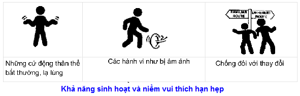 Đặc điểm đặc trưng của tự kỷ là khiếm khuyết về tương tác xã hội, ít giao tiếp mắt, khó khăn về giao tiếp ngôn ngữ và phi ngôn ngữ như vỗ tay, khoe vật để tạo sự chú ý với người lớn. Hoạt động và sở thích mang tín chất hạn hẹp lặp đi lặp lại.
